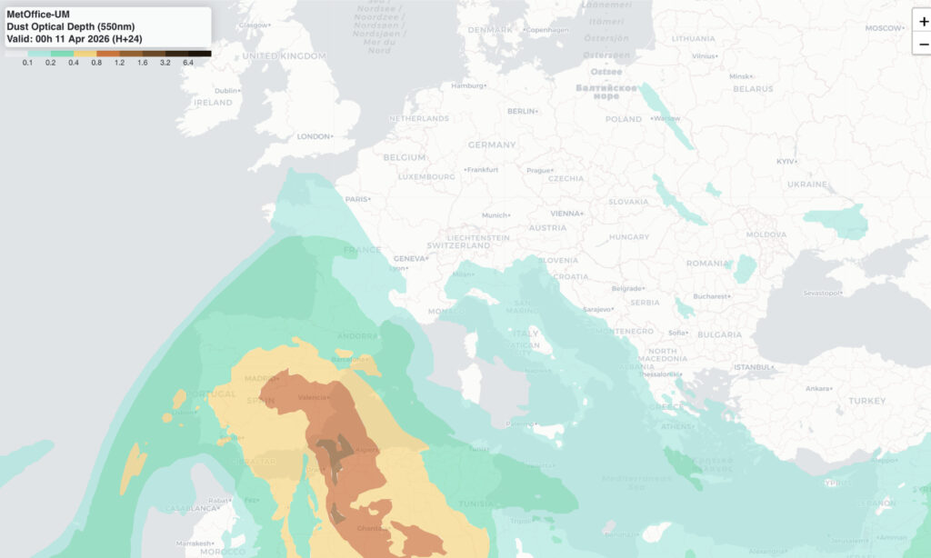 Se emite la presente nota nivológica debido a que los valores de precipitación registrados han sido significativamente inferiores a los previstos por los modelos meteorológicos consultados. Durante la madrugada del sábado 11, la concentración de polvo mineral sahariano alcanzó valores muy elevados, próximos a los 700 µg/m³.