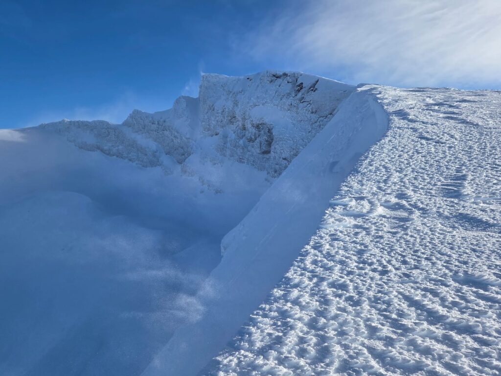 Sobre la costra de hielo que teníamos previamente se ha sumado importantes precipitaciones en las últimas horas. Ha predominado el graupel con espesores que van desde los 60 centímetros al metro de nieve seca.